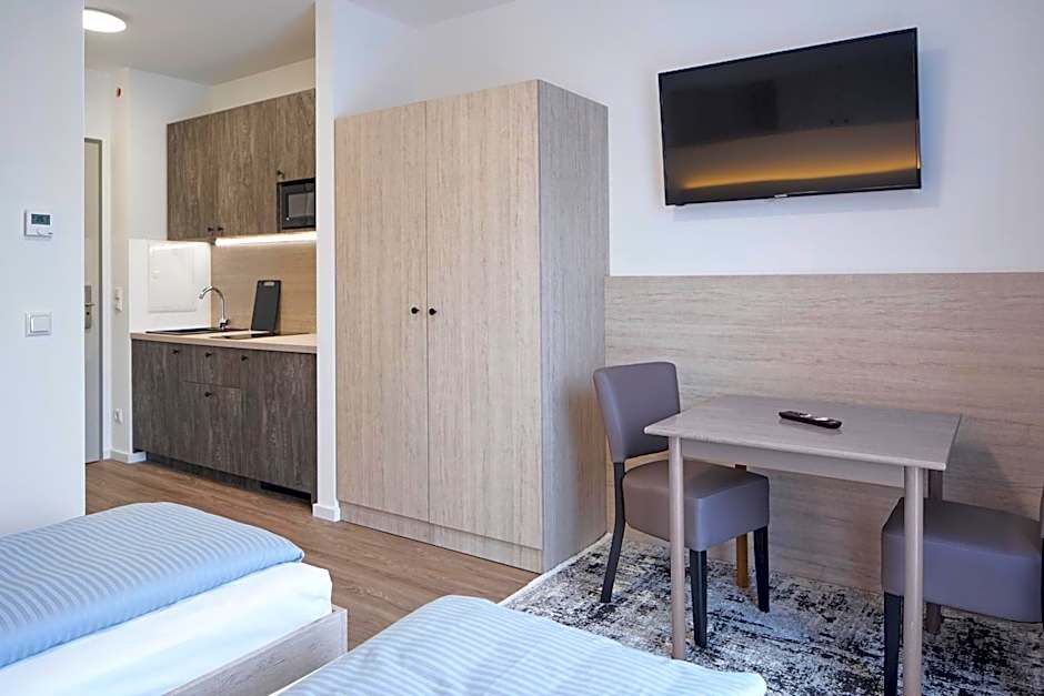 Mit einer eigenständigen Ausstattung in München bietet dieses Aparthotel eine praktische Basis für Reisende, die Flexibilität und Komfort suchen, bei der Küchenmöglichkeiten auf Bequemlichkeit treffen und Parkoptionen sowie ruhige Nächte durch Schallisolierung unterstützt werden.